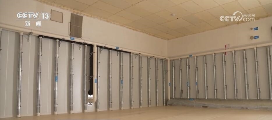 當(dāng)工作人員打開這座暫時(shí)空著的倉庫時(shí),墻壁上的一排排管道十分搶眼。天氣熱的時(shí)候,這四面墻的氣道里都會(huì)充入冷空氣,再加上頂部的風(fēng)道,這“五面立體動(dòng)態(tài)控溫技術(shù)”就相當(dāng)于給糧倉內(nèi)外加了一道隔離帶,低溫保鮮。