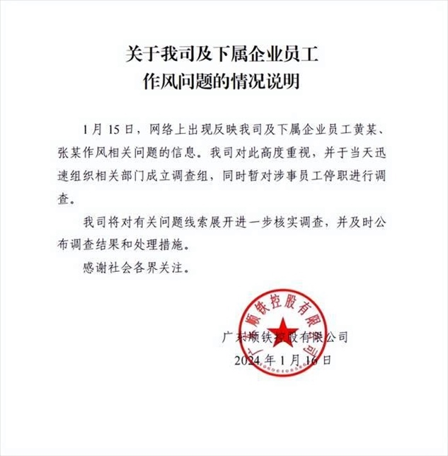·廣東一國資公司中層領(lǐng)導(dǎo)被指婚內(nèi)出軌女同事?涉事公司發(fā)布情況說明。