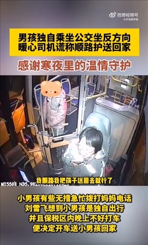 近日在山東青島,黃島公交東2路駕駛員劉雪飛即將到達(dá)終點(diǎn)時(shí),車上一位小男孩遲遲沒下車,詢問發(fā)現(xiàn)他坐反了車。男孩慌忙給媽媽打電話,劉雪飛想到男孩獨(dú)自出行晚上也不好打車,決定開車送他回家。雖然并不順路,劉雪飛還是跟孩子?jì)寢屨f可以順路送他,最終將男孩平安送回家。感謝善意的謊言,感謝寒夜里的溫情守護(hù)!