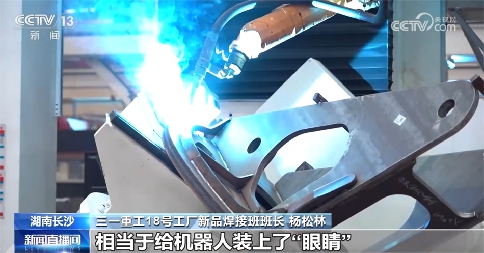 三一重工18號工廠新品焊接班班長 楊松林:這就是我工作的地方。這邊有一排排的工作島,穩(wěn)居“C”位的就是我們的轉(zhuǎn)臺焊接工作島。依托數(shù)字化電弧跟蹤技術(shù),相當(dāng)于給機(jī)器人裝上了“眼睛”,焊槍可以自己去尋找鎖定,并跟蹤焊點(diǎn),實(shí)現(xiàn)連續(xù)性的焊接,在行業(yè)還是首創(chuàng),我們的效率和質(zhì)量都大大提升了。