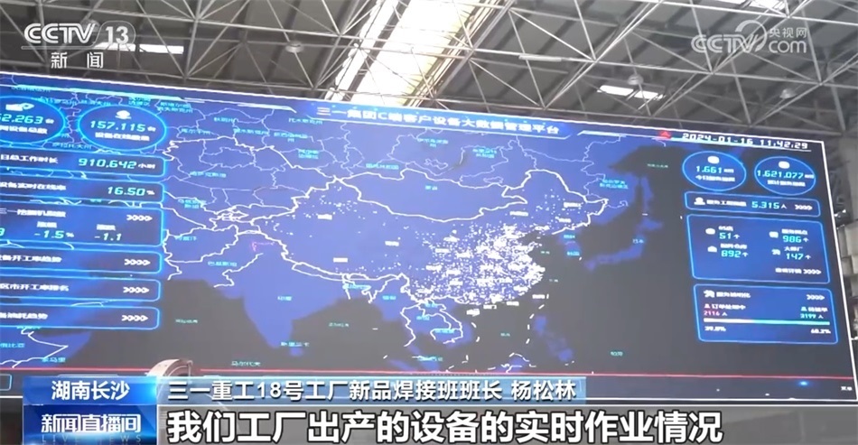 三一重工18號工廠新品焊接班班長 楊松林:來我們“燈塔工廠”參觀,我們都會(huì)看到一個(gè)超級大的屏幕,每一個(gè)閃光點(diǎn)都代表著我們工廠出廠的設(shè)備的實(shí)時(shí)作業(yè)情況。這些閃光點(diǎn)最后就形成了一個(gè)三一的挖掘機(jī)指數(shù),就相當(dāng)于我們業(yè)內(nèi)工程行業(yè)的一個(gè)晴雨表,其實(shí)我們還是挺自豪的。