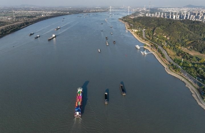 冬季枯水期,長(zhǎng)江江蘇段依舊浩浩蕩蕩,萬(wàn)噸巨輪往來(lái)如梭。這里是長(zhǎng)江黃金水道“鉆石航段”,承載全線七成貨運(yùn)量、全國(guó)一成半水上貨運(yùn)量,助力江蘇建設(shè)具有世界聚合力的雙向開放樞紐。