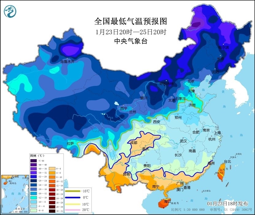 央視網(wǎng)消息:中央氣象臺1月23日18時(shí)繼續(xù)發(fā)布低溫藍(lán)色預(yù)警:預(yù)計(jì),1月24日至25日,貴州、湖南中南部、江西中南部、浙江中南部、福建、廣東、廣西東部等地最低氣溫或平均氣溫較歷史同期偏低5℃以上,其中,貴州中東部、湖南中部、江西中南部、浙江南部、福建西部、廣東西南部、廣西東南部等地的部分地區(qū)偏低7℃以上,最低氣溫0℃線位于廣西北部、廣東北部一帶 。
