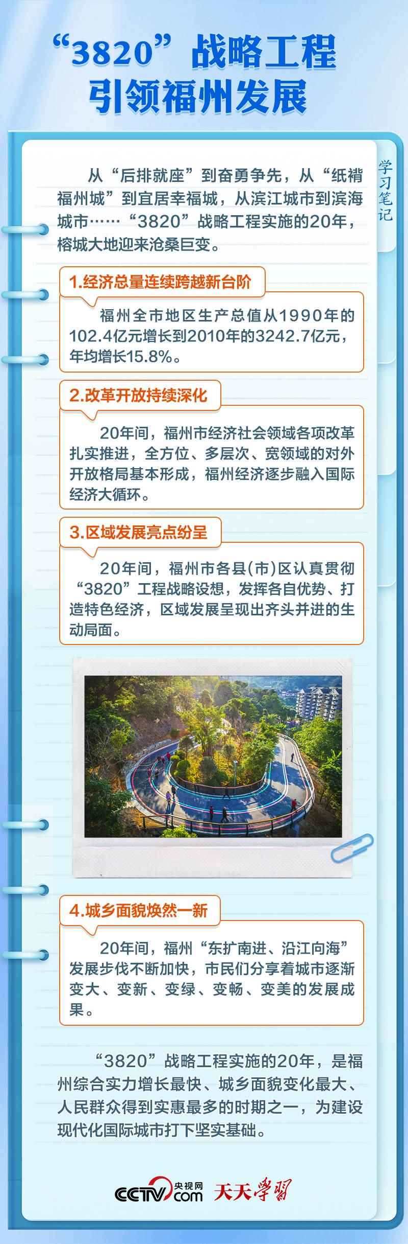 上世紀(jì)90年代,習(xí)近平在福州工作期間,親自主持編制了《福州市20年經(jīng)濟(jì)社會(huì)發(fā)展戰(zhàn)略設(shè)想》(簡(jiǎn)稱“3820”戰(zhàn)略工程),系統(tǒng)謀劃了福州3年、8年、20年經(jīng)濟(jì)社會(huì)發(fā)展的目標(biāo)、步驟、布局、重點(diǎn)等,為福州擘畫了美好藍(lán)圖,確立了總綱領(lǐng)、總方略。