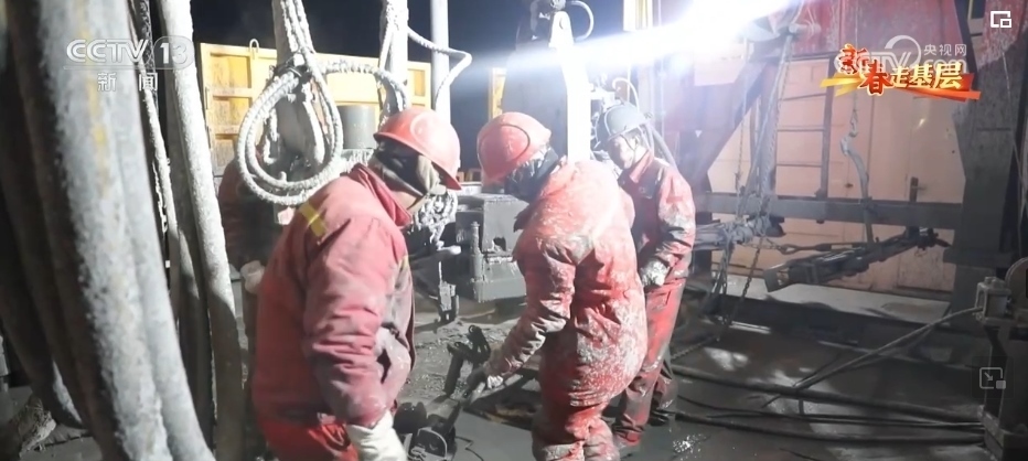 夜幕降臨,“英雄嶺”最低氣溫接近零下30攝氏度。在向地下深處挺進(jìn)的過(guò)程中,滾燙的泥漿隨時(shí)都會(huì)噴到衣服和臉上,又很快在嚴(yán)寒中變成一層冰泥殼。