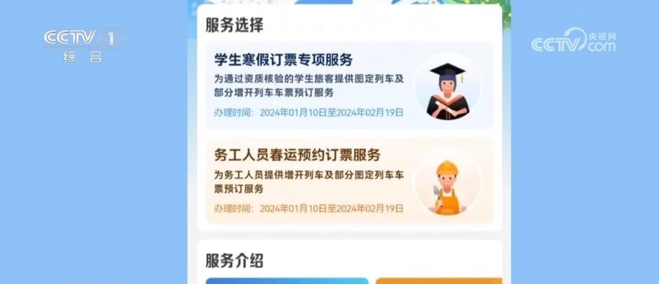 今年春運(yùn),鐵路部門(mén)推出預(yù)約購(gòu)票和預(yù)填購(gòu)票兩項(xiàng)購(gòu)票新方式,預(yù)約購(gòu)票功能專(zhuān)門(mén)針對(duì)學(xué)生和務(wù)工人員。符合條件的學(xué)生旅客(已通過(guò)學(xué)生優(yōu)惠資質(zhì)核驗(yàn)且有剩余優(yōu)惠乘車(chē)次數(shù))可通過(guò)“學(xué)生寒假訂票專(zhuān)項(xiàng)服務(wù)”專(zhuān)區(qū)預(yù)約購(gòu)買(mǎi)春運(yùn)期間的火車(chē)票。已通過(guò)實(shí)名制核驗(yàn)的務(wù)工人員可通過(guò)“務(wù)工人員春運(yùn)預(yù)約訂票服務(wù)”專(zhuān)區(qū)預(yù)約購(gòu)買(mǎi)春運(yùn)期間火車(chē)票。