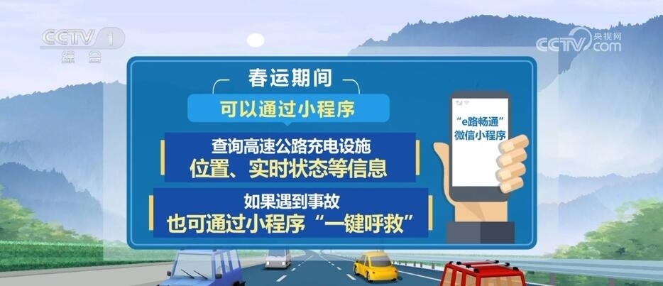 為提升今年春運(yùn)服務(wù),交通運(yùn)輸部還上線(xiàn)“e路暢通”微信小程序,春運(yùn)期間,大家可以通過(guò)小程序,查詢(xún)高速公路充電設(shè)施位置、實(shí)時(shí)狀態(tài)等信息,如果遇到事故,也可通過(guò)小程序“一鍵呼救”。