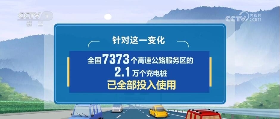 今年公路出行還有一個(gè)新變化,就是在小客車(chē)出行當(dāng)中,新能源車(chē)輛占比增多。針對(duì)這一變化,目前,全國(guó)7373個(gè)高速公路服務(wù)區(qū)的2.1萬(wàn)個(gè)充電樁已全部投入使用。