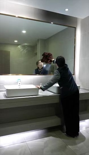 王柳云的保潔面積很大,整個寫字樓的十五層和十七層,地板、桌椅、窗戶、衛(wèi)生間,都是她的職責范圍?!昂芏嗳艘婚_完會,杯子、椅子、桌子要清理,還有窗子全部要擦干凈”,她形容自己的工作量“三四個人都干不完”,但她看中了這份工作留給她的一隅,隨便找個角落就可以寫字畫畫。