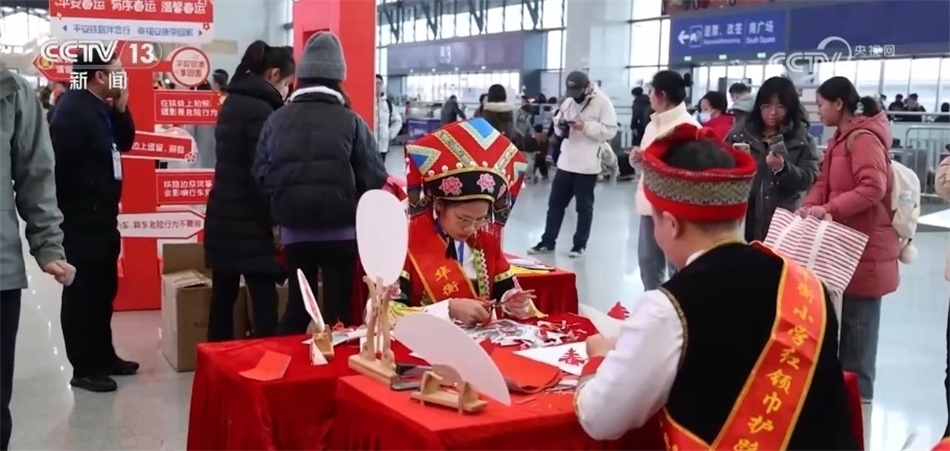 在哈爾濱、西安、上海、廣州各地的火車站,送“?!?、快閃、簽名打卡、文藝表演、民俗文化展示等豐富多彩的活動讓人們帶上一份好心情,踏上溫馨的團(tuán)圓之旅。