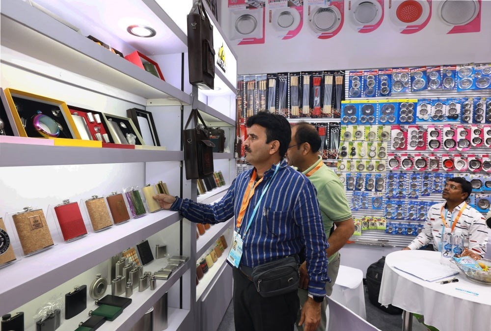 2023年10月21日,在義烏國(guó)際博覽中心舉行的第29屆中國(guó)義烏國(guó)際小商品(標(biāo)準(zhǔn))博覽會(huì)上,外商在采購(gòu)小商品。新華社發(fā)(龔獻(xiàn)明 攝)
