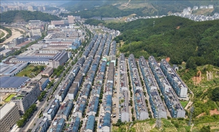 長(zhǎng)廣煤礦安置小區(qū)其中一期——金水苑小區(qū)鳥瞰圖。陳鮮忠工作室供圖
