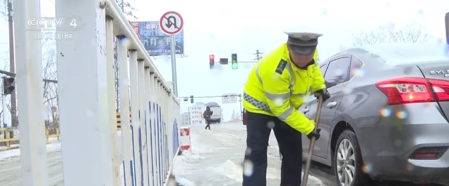 交通運(yùn)輸部門儲(chǔ)備融雪劑70余噸、防滑料千余立方米,在道路上撒融雪劑、清理積雪,施救被困車輛,及時(shí)排除安全隱患。公安交警部門現(xiàn)場(chǎng)疏導(dǎo),對(duì)車輛進(jìn)行安全檢查,在積雪結(jié)冰路段和彎道處設(shè)置安全提醒,警車引導(dǎo)通行,保障兩省群眾“返鄉(xiāng)路”平安暢通。
