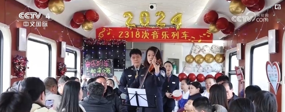 隨著春節(jié)臨近,在外務(wù)工的游子們紛紛踏上了回家的旅途。在青島北開往成都西Z318次列車上,悅耳歡快旋律響起,列車工作人員邀請3位學生旅客,為大家演奏了悠揚歡快的樂曲。
