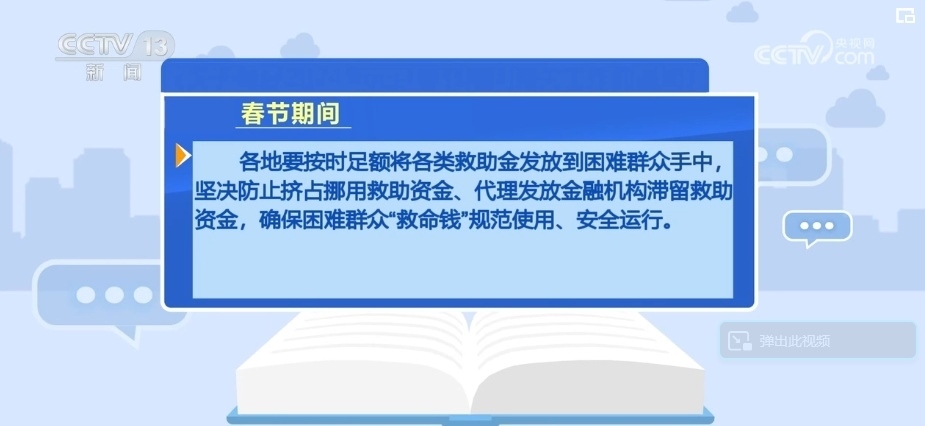 各地要按時(shí)足額將各類救助金發(fā)放到困難群眾手中,堅(jiān)決防止擠占挪用救助資金、代理發(fā)放金融機(jī)構(gòu)滯留救助資金,確保困難群眾“救命錢”規(guī)范使用、安全運(yùn)行。