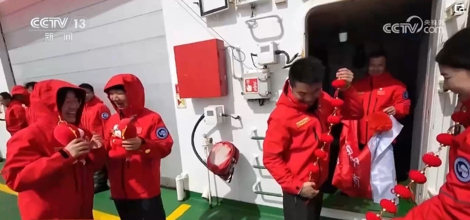 每逢佳節(jié)倍思親,龍年新年到了,考察隊(duì)員們排隊(duì)打電話、一起錄視頻,把祝福傳回萬里之外的國內(nèi)。