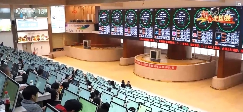 這里是昆明花卉拍賣交易中心,年交易量近25億枝,高峰期每天交易量1100多萬枝。這里的3000多位鮮花經(jīng)紀(jì)人,鏈接著3萬多家供貨商。這里的40多個(gè)品類,3000多個(gè)品種的鮮切花,市場(chǎng)遍及全球40多個(gè)國(guó)家和地區(qū)。這里的拍賣交易中心,平均每一筆花的交易時(shí)間不到4秒,但凡有點(diǎn)猶豫,就拍不到自己想要的花。