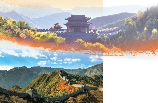 上圖:山西雁門關(guān)長(zhǎng)城。下圖:秋日的天津黃崖關(guān)長(zhǎng)城,色彩斑斕。王金一攝
