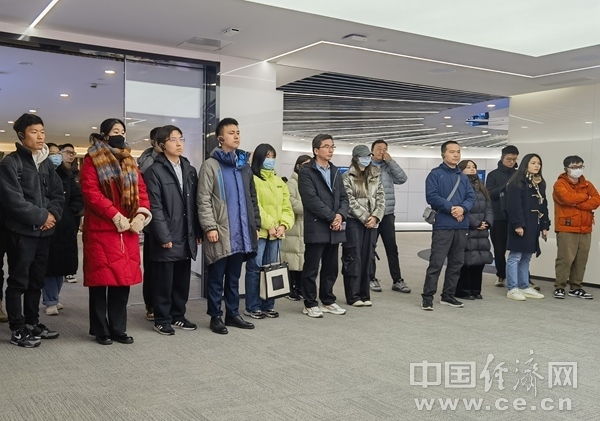 2023年12月18日,浙江大學(xué)師生代表隨團在浙江杭州中國視谷調(diào)研。左二為浙江大學(xué)學(xué)生蔡安禧,左三為浙江大學(xué)學(xué)生金姚烗,左四為浙江大學(xué)馬克思主義學(xué)院教師陳曉偉。(中國經(jīng)濟網(wǎng)記者 王巖/攝)