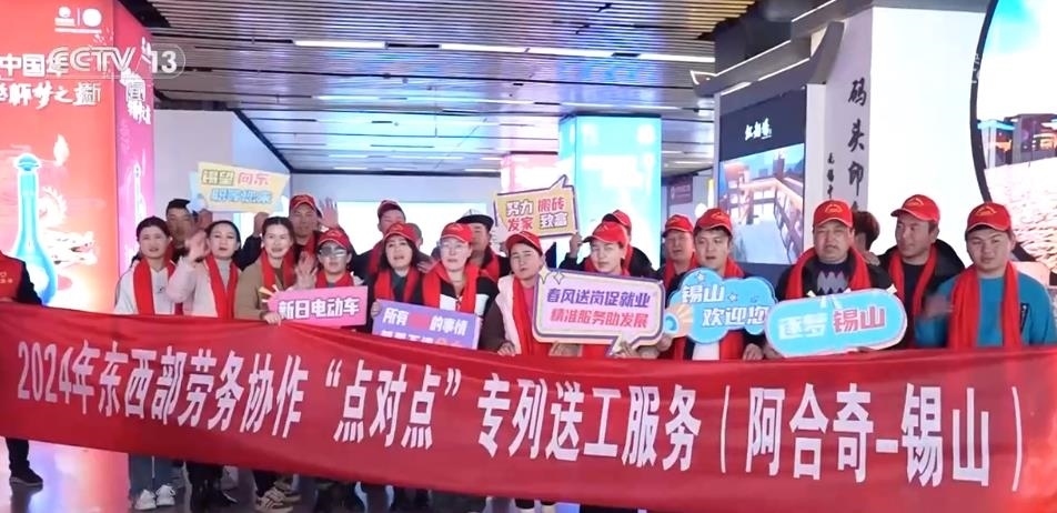 在江蘇無(wú)錫,用工企業(yè)早早來(lái)到火車站口,迎接首批新疆務(wù)工人員的到來(lái)?!包c(diǎn)對(duì)點(diǎn)”大巴車將員工直接送到企業(yè)門口。