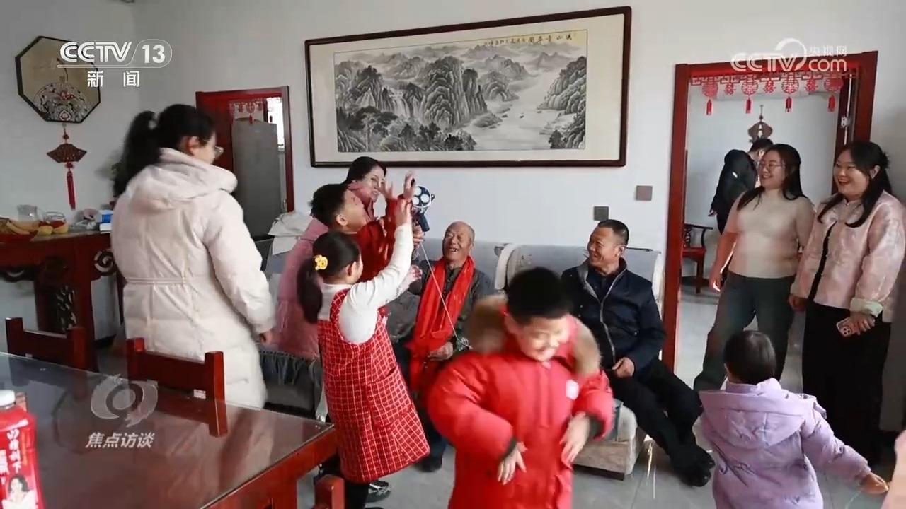 除夕,大紅的“福”字透著節(jié)日的喜氣。在河北省武邑縣的大劉莊村,83歲的郭順義老人家里格外熱鬧,四世同堂的5個家庭,15口人團聚在一起過年,這是這個大家庭一年中最重要的日子。