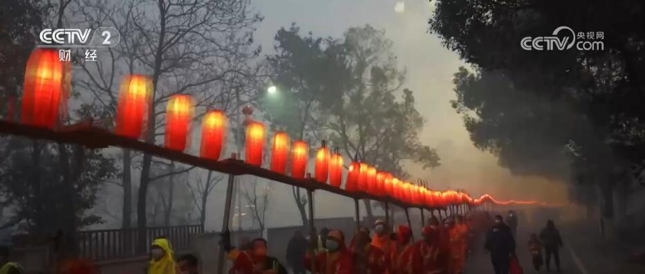 近日,一條火紅的“板燈龍”燈隊(duì)穿梭于江西南昌安義縣,“板燈龍”連接在一起,氣勢(shì)磅礴。