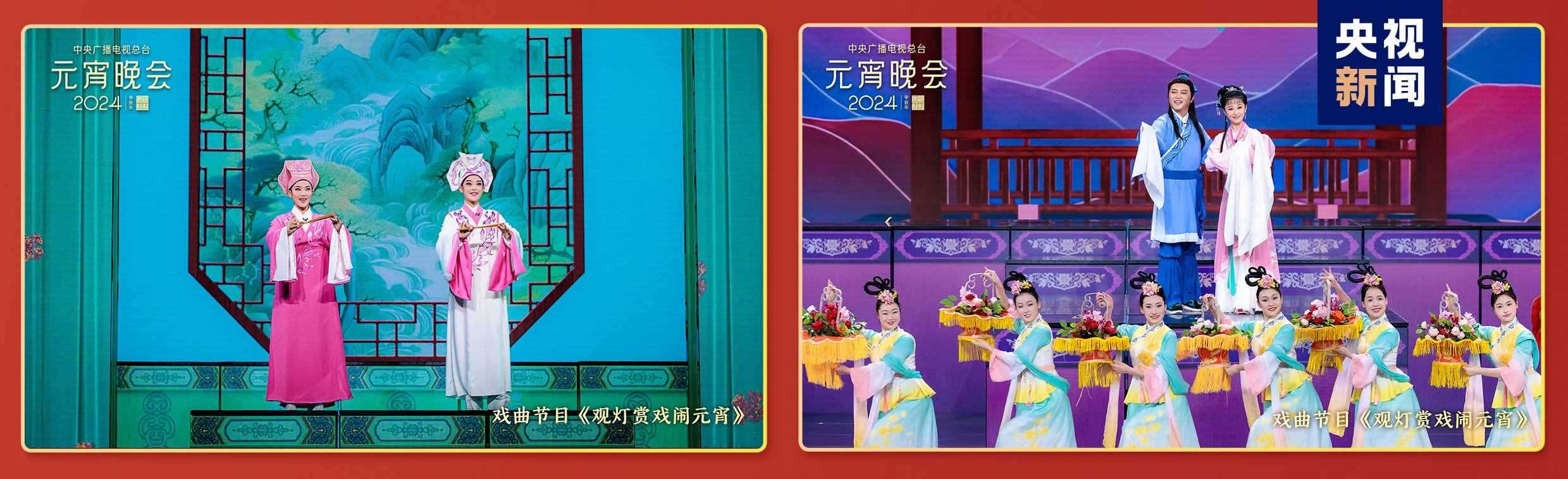 戲曲節(jié)目中,伴隨著“火樹千春妍,元夕月正圓,歡歌笑語喧”的戲腔戲韻,閩劇戲歌首次亮相總臺元宵晚會。其他劇種還玩上了跨界表演,熟悉的旋律響起,站在舞臺上的表演者卻是令人直呼意外的“混搭”組合。陳麗君與黃齡攜手帶來越劇《梁?!愤x段,潘檸靜與沙溢共唱黃梅戲《天仙配》,在上元之夜演繹傳世愛情故事,“戲曲真的出圈了”“誰說年輕人不聽?wèi)颍肋h(yuǎn)為經(jīng)典唱段打call”。
