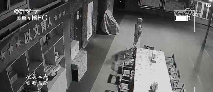放置在哨樓的攝像機(jī),在凌晨兩點(diǎn)多的時候記錄了新兵們第一次執(zhí)勤時的狀態(tài)。