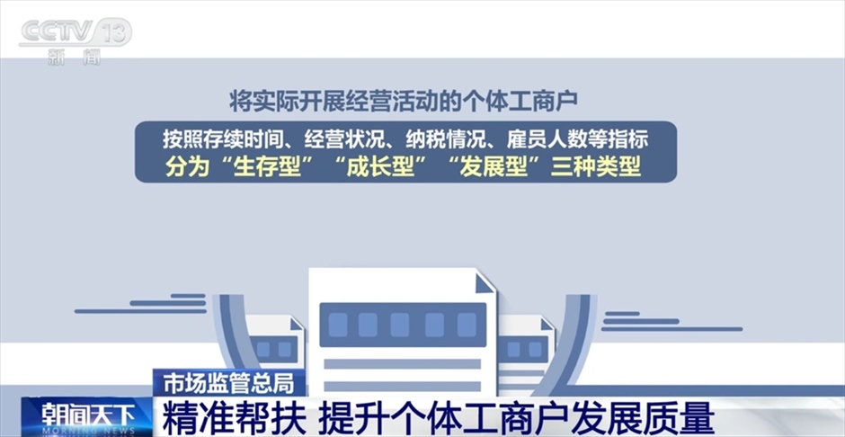 市場(chǎng)監(jiān)管總局相關(guān)負(fù)責(zé)人介紹,下一步將繼續(xù)采取措施,讓處于初創(chuàng)階段的“生存型”個(gè)體工商戶更好地“活下來(lái)”,讓處于穩(wěn)定經(jīng)營(yíng)階段的“成長(zhǎng)型”個(gè)體工商戶“走得穩(wěn)”“行得遠(yuǎn)”,讓處于持續(xù)壯大階段的“發(fā)展型”個(gè)體工商戶“做得強(qiáng)”。