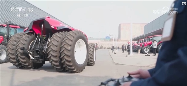 在這個(gè)數(shù)字項(xiàng)目區(qū),拖拉機(jī)生產(chǎn)的幾十道工序都在不斷優(yōu)化創(chuàng)新。這個(gè)沒有駕駛艙,更沒有駕駛員的拖拉機(jī)可以自由行走,指揮它行動(dòng)的是一部手持操作面板,這是中國一拖新上線的無人駕駛拖拉機(jī)。