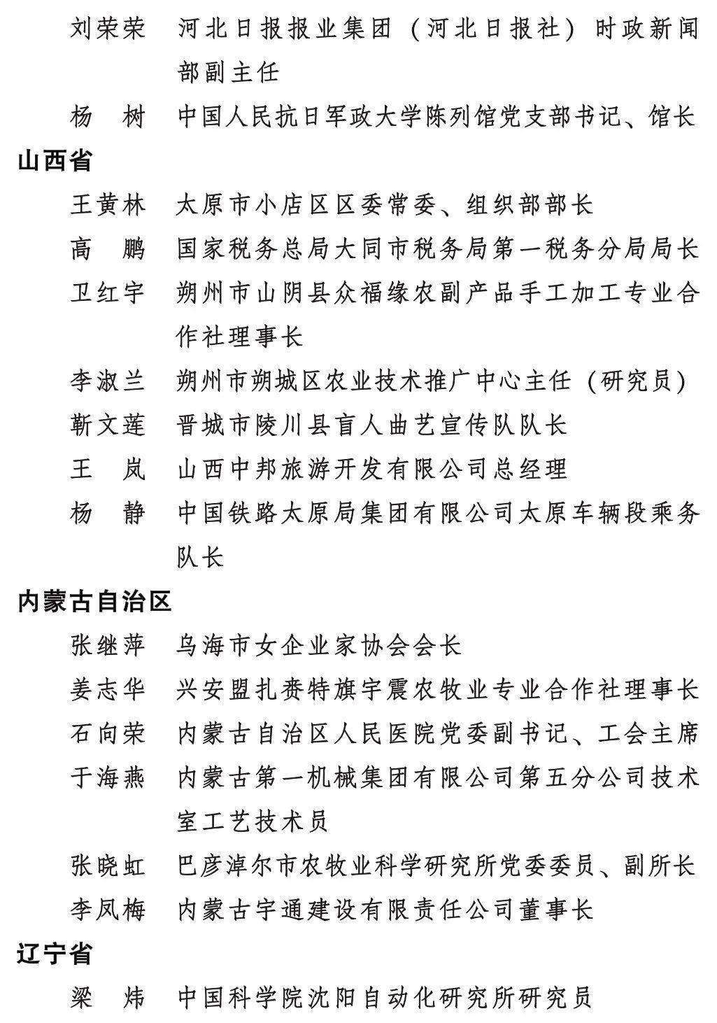 全國三八紅旗手標兵名單