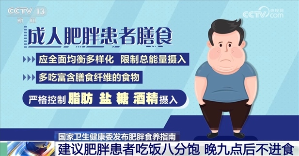 央視網(wǎng)消息:記者從國家衛(wèi)生健康委了解到,今年被確定為“健康體重管理年”。近日,國家衛(wèi)生健康委發(fā)布了《成人、兒童青少年肥胖食養(yǎng)指南》,指南指出,我國18歲及以上居民肥胖率呈上升趨勢,兒童青少年肥胖率快速上升,肥胖防控已刻不容緩。指南針對不同地區(qū)的不同肥胖人群提供了營養(yǎng)健康建議。