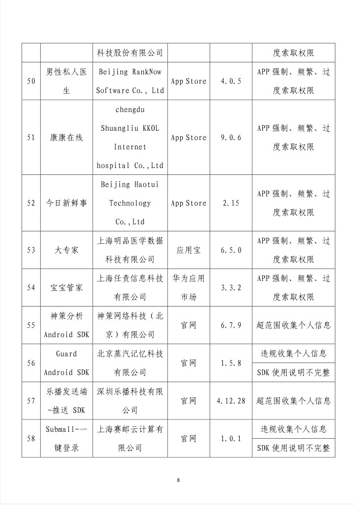 工業(yè)和信息化部高度重視用戶權(quán)益保護工作,依據(jù)《個人信息保護法》《網(wǎng)絡(luò)安全法》《電信條例》《電信和互聯(lián)網(wǎng)用戶個人信息保護規(guī)定》等法律法規(guī),持續(xù)整治APP侵害用戶權(quán)益的違規(guī)行為。近期,工業(yè)和信息化部組織第三方檢測機構(gòu)對用戶反映突出的“搖一搖”亂跳轉(zhuǎn)、信息窗口“關(guān)不掉”以及違規(guī)收集使用個人信息等問題進行檢查,共發(fā)現(xiàn)62款A(yù)PP及SDK存在侵害用戶權(quán)益行為,現(xiàn)予以通報。
