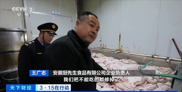安徽廚先生食品有限公司企業(yè)負(fù)責(zé)人 王廣志:我們把不能吃的都修掉了,賣(mài)廢油、煉飼料油了。