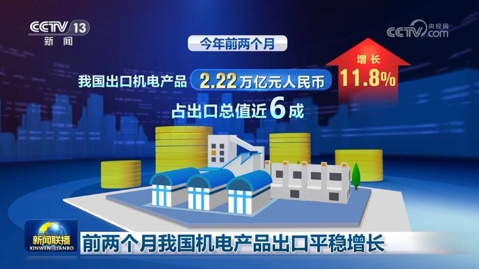 最新數(shù)據(jù)顯示,今年前兩個月,全球電子信息市場回暖復蘇,我國機電產品出口平穩(wěn)增長。