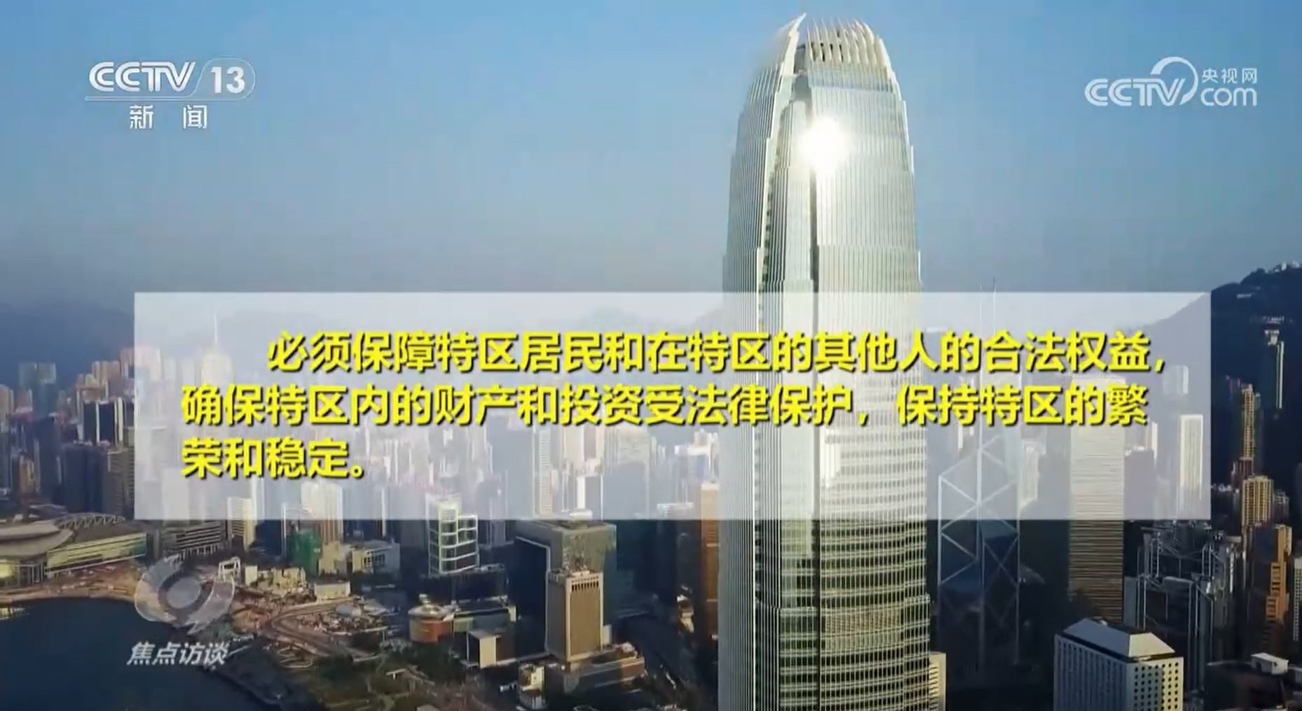 全國(guó)政協(xié)港澳臺(tái)僑委員會(huì)副主任屠海鳴:“香港應(yīng)該是一個(gè)法治城市,香港應(yīng)該是恢復(fù)往日繁榮穩(wěn)定,香港應(yīng)該更好搭乘中國(guó)高速度向前飛馳的列車(chē)。在這種狀況下,這次是天時(shí)地利人和,所以香港750萬(wàn)市民都感到由衷興奮、由衷喜悅、由衷高興?!?/p>