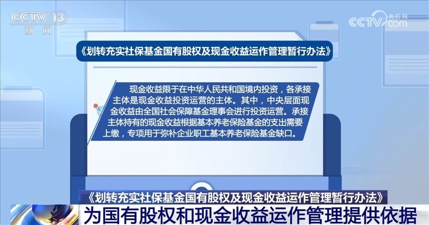 央視網(wǎng)消息:近日,財(cái)政部、人力資源社會(huì)保障部、國(guó)務(wù)院國(guó)資委三部門聯(lián)合印發(fā)了《劃轉(zhuǎn)充實(shí)社?;饑?guó)有股權(quán)及現(xiàn)金收益運(yùn)作管理暫行辦法》(以下簡(jiǎn)稱《辦法》)?!掇k法》為承接主體開展國(guó)有股權(quán)和現(xiàn)金收益運(yùn)作管理提供了依據(jù)。