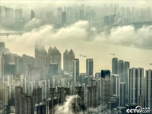 2024年4月1日,武漢出現(xiàn)平流霧景觀,高樓建筑云霧中若隱若現(xiàn),如夢(mèng)如幻。