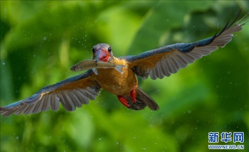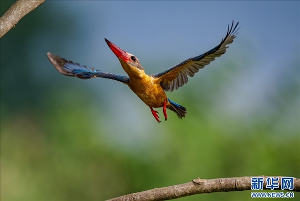 飛翔的鸛嘴翡翠(3月31日攝)。新華網發(fā)(高峰 攝)