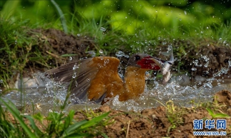 近日,在云南省德宏傣族景頗族自治州盈江縣那邦鎮(zhèn),攝影師拍攝到國家二級重點保護野生動物鸛嘴翡翠捕食的精彩畫面和兩只鸛嘴翡翠同框的罕見畫面。據了解,那邦鎮(zhèn)是中國觀鳥圣地之一,有許多珍貴的鳥類在此被攝影師記錄過。(朱邊勇 尹以祜 張仁韜 沙永勝)