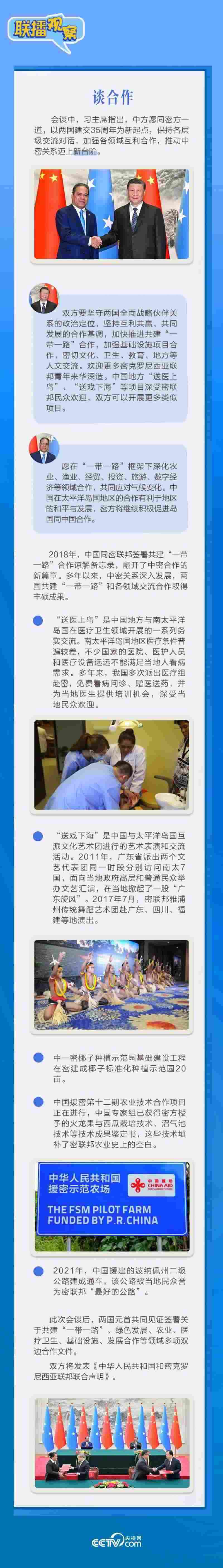 應(yīng)習(xí)近平主席邀請(qǐng),密克羅尼西亞聯(lián)邦總統(tǒng)韋斯利·西米納于4月5日至12日對(duì)中國(guó)進(jìn)行國(guó)事訪問(wèn)。4月9日下午,習(xí)近平主席在北京人民大會(huì)堂同西米納總統(tǒng)舉行會(huì)談,就雙邊關(guān)系發(fā)展及共同關(guān)心的問(wèn)題深入交換意見(jiàn)。雙方會(huì)談哪些細(xì)節(jié)值得關(guān)注?央視網(wǎng)《聯(lián)播觀察》帶您了解。