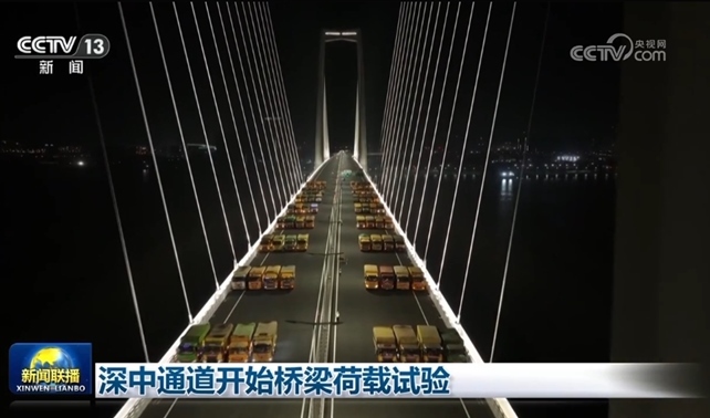 央視網(wǎng)消息(新聞聯(lián)播):今天(4月13日),粵港澳大灣區(qū)超級工程深中通道進入橋梁荷載試驗階段。在中山大橋,64輛大貨車停在橋梁跨中位置,檢測橋梁位移和應力情況,測試動力參數(shù)、汽車沖擊系數(shù)等。