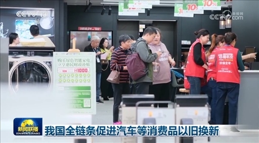 央視網消息(新聞聯播):記者從商務部了解到,近日,14部門聯合發(fā)布《推動消費品以舊換新行動方案》,部署組織在全國范圍內開展汽車、家電、家裝廚衛(wèi)等消費品以舊換新。