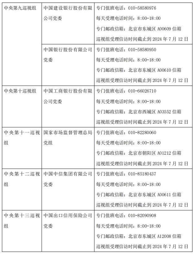 經(jīng)黨中央批準(zhǔn),二十屆中央第三輪巡視將對(duì)國(guó)家發(fā)展和改革委員會(huì)、財(cái)政部、自然資源部、住房和城鄉(xiāng)建設(shè)部、農(nóng)業(yè)農(nóng)村部、商務(wù)部、中國(guó)人民銀行、審計(jì)署、海關(guān)總署、國(guó)家稅務(wù)總局、國(guó)家市場(chǎng)監(jiān)督管理總局、國(guó)家金融監(jiān)督管理總局、中國(guó)證券監(jiān)督管理委員會(huì)、國(guó)家統(tǒng)計(jì)局、國(guó)家知識(shí)產(chǎn)權(quán)局、國(guó)家糧食和物資儲(chǔ)備局、國(guó)家能源局、國(guó)家林業(yè)和草原局、國(guó)家外匯管理局、中華全國(guó)供銷合作總社、全國(guó)社會(huì)保障基金理事會(huì)、中國(guó)地質(zhì)調(diào)查局、上海證券交易所、深圳證券交易所、中國(guó)進(jìn)出口銀行、中國(guó)工商銀行股份有限公司、中國(guó)農(nóng)業(yè)銀行股份有限公司、中國(guó)銀行股份有限公司、中國(guó)建設(shè)銀行股份有限公司、交通銀行股份有限公司、中國(guó)中信集團(tuán)有限公司、中國(guó)人壽保險(xiǎn)(集團(tuán))公司、中國(guó)太平保險(xiǎn)集團(tuán)有限責(zé)任公司、中國(guó)出口信用保險(xiǎn)公司等34家單位黨委(黨組)開(kāi)展常規(guī)巡視。