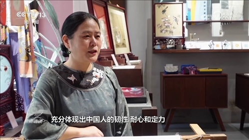 盧建英:“當(dāng)時我在繡一幅《桃花太平鳥圖》,習(xí)近平總書記走到了我的繃架前。他說你好,很親切,很和藹,看得非常仔細(xì)。他說中華文化的傳承力有多強(qiáng),通過這個蘇繡可以看出來,像這樣的功夫充分體現(xiàn)出中國人的韌性、耐心和定力,這是中華民族精神的一部分,能得到總書記的認(rèn)可,真的是倍感榮耀?!?/p>