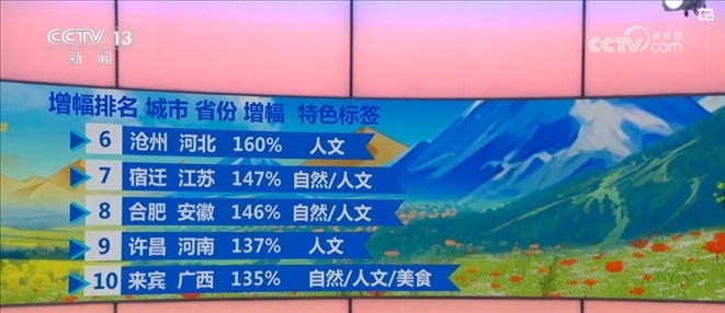 二三線旅游市場(chǎng)快速崛起,不僅在“五一”假期凸顯出來(lái),在清明假期就已經(jīng)顯現(xiàn)出端倪。綜合出游平臺(tái)數(shù)據(jù)顯示,當(dāng)時(shí),西部地區(qū)的向?qū)в唵瘟空伎傆唵瘟?1%。甘肅天水、新疆那拉提草原等熱度飆升較快。