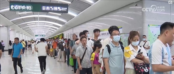 讓陳紅一家人始料不及的是,像她們一樣前來體驗新線路的旅客不在少數(shù),安檢站排起了大長隊。等到她們進(jìn)站之后,首班車已經(jīng)開走,但她們卻也并不著急。