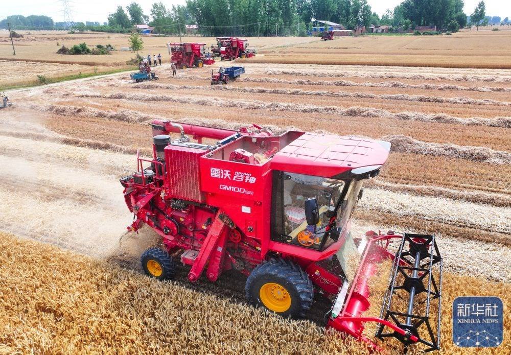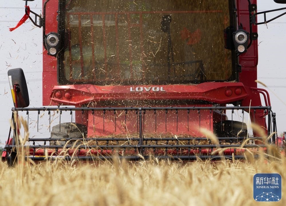 5月26日,農民駕駛收割機在河南省寶豐縣鬧店鎮(zhèn)鬧店村麥田里收割小麥。新華社發(fā)(何五昌攝)