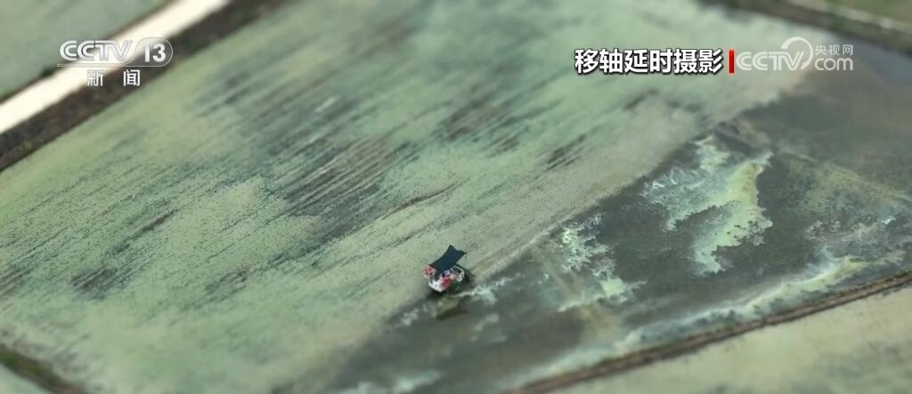 現(xiàn)在您看到的是河南信陽(yáng)淮河以南的水稻插秧現(xiàn)場(chǎng)。插秧機(jī)在田間穿梭,一株株茁壯的秧苗被整齊有序地植入田間,一會(huì)兒工夫就插滿了整塊稻田??罩懈╊?,一臺(tái)臺(tái)插秧機(jī)在農(nóng)機(jī)手的操控下好似一把把畫刷,在稻田上輕輕暈染,繪就丹青。而同在信陽(yáng),淮河以北的麥田里,則是金色的麥浪翻滾起伏,收割機(jī)馳騁田間,飽滿的麥穗被卷入機(jī)艙,經(jīng)過(guò)收割、脫粒,顆粒歸倉(cāng)。