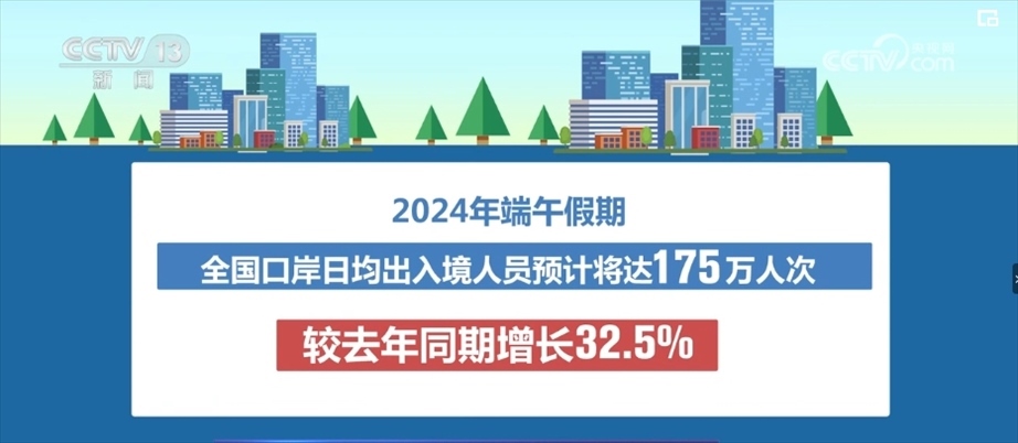 央視網消息:記者6月6日從國家移民管理局獲悉,2024年端午假期,全國口岸日均出入境人員預計將達175萬人次,較2023年同期增長32.5%。